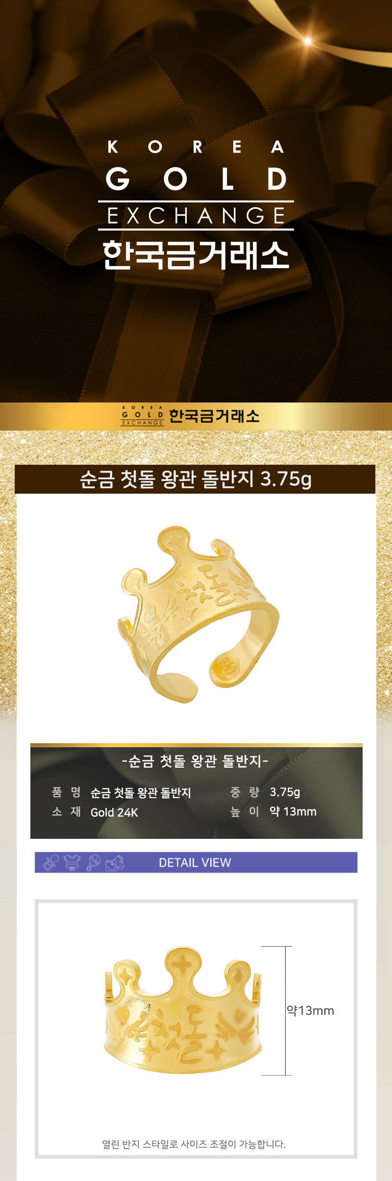 순금 첫돌 왕관 돌반지 3.75g